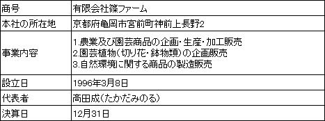 | 営業者 | 有限会社篠ファーム | |||