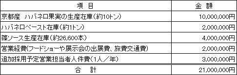 営業者は京都産のハバネロを原料とした製品を開発し、ハバネロ製品の企画製造販売の実績を積み上げてきました。その実績とノウハウを活かして当期より、以下の施策を実施することで、ハバネロ製品を拡販させることを計画しています。