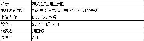 営業者は新設会社です。営業者の株主及び代表者である川田氏は、有限会社川田農園の経営者であり、同社において有機無農薬栽培による野菜の生産・販売を行っております。「有機無農薬」に強いこだわりを追求しながらも、収量歩留まりを高めるビジネスとしての独自の農法を展開しており、昨年秋には、テレビ東京系「ソロモン流」にて取り上げられたことをきっかけに、問い合わせ件数も一段と増加しています。そのような状況の中、経営の6次産業化により、強みである有機無農薬野菜の多品種中量生産という強みを最大限に活用することをめざし、新規事業として新会社にてレストラン事業を開始することとした次第です。新規事業の展開に際しては、以下の施策・強みを生かし、事業計画を達成させる所存です。
