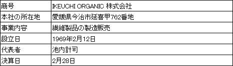 | 営業者 | IKEUCHI ORGANIC 株式会社 | |||