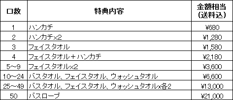 | (注4) | 特典は、営業者の都合により内容が変更される場合や、実施ができなくなる場合もあることをご留意ください。 |