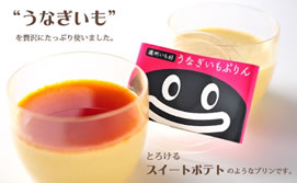 ![]() | プリン <商品の特徴> うなぎいもの甘みやしっとり感を生かした、スイートポテトのようなプリンです。芋の食感を生かして少し固めのプリンですが、丁寧にうらごしされたサツマイモがお口の中でとろけます。保存料や着色料など添加物不使用で、食物繊維はレタス1/4個分含まれており、美容と健康を気遣う方にオススメです。 |