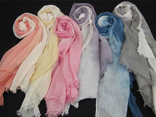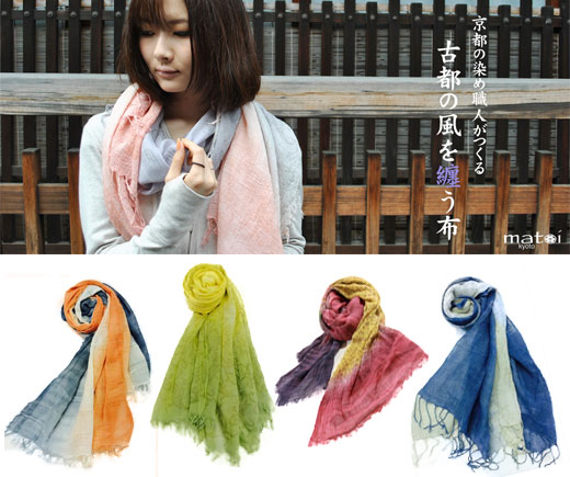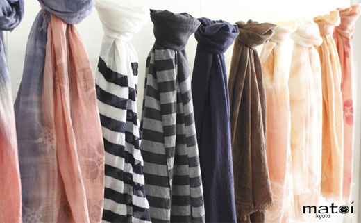 営業者は先々代より京都にて呉服屋を営んでおり、呉服屋は先代で廃業。営業者の代表者が捺染(プリント)職人として技術を磨き、1995年に創業しました。Tシャツのプリントの加工受託、OEM製造を中心に事業を行ってきましたが、2012年に新たに開発した「新万葉染」による「matoi」という自社ブランドの京染ストールとして商品化しています。