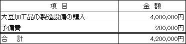 既存製品の仕入ルートは確立されているため問題はありません。新製品である大豆加工品に必要な大豆は、自社生産および外部からの購入で調達します。自社での大豆の生産は5年前から取り組んでおり、大豆の栽培に必要なノウハウを蓄積し、毎年、収穫量が増加しています。外部からの仕入れについても既存製品の仕入ルートにより調達が可能です。