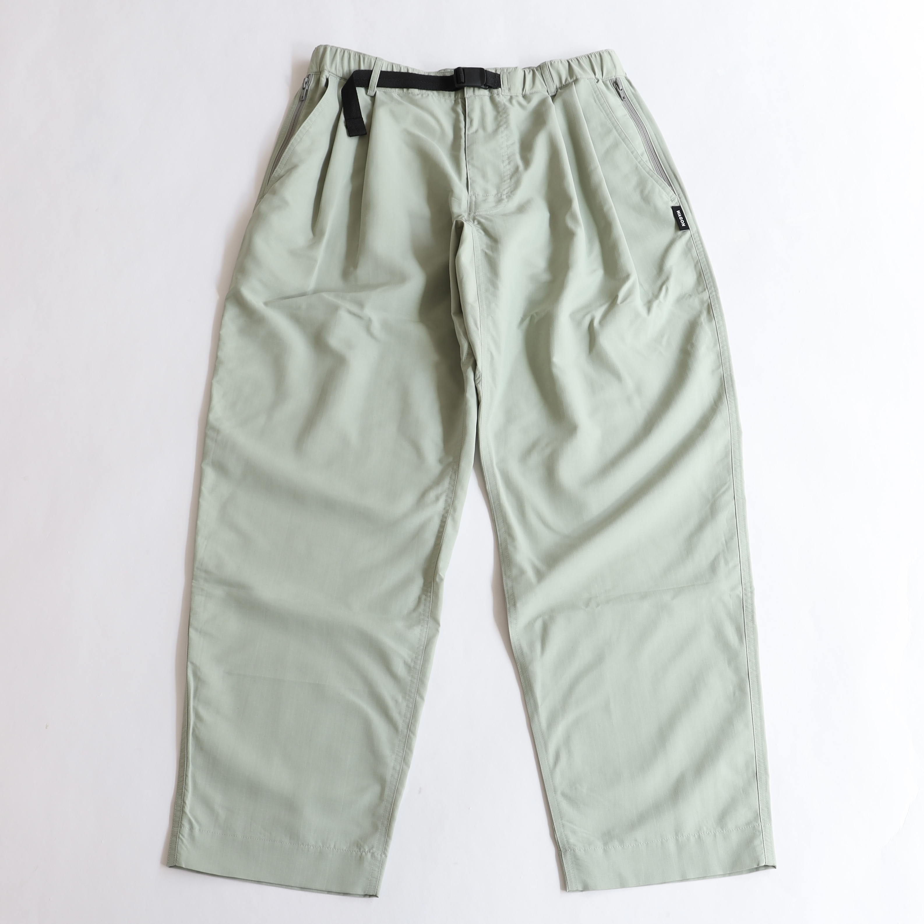 2タックが入った太めのモデル、太ももから裾にむけてストンと落ちた太めのシルエットが特徴のモベル。