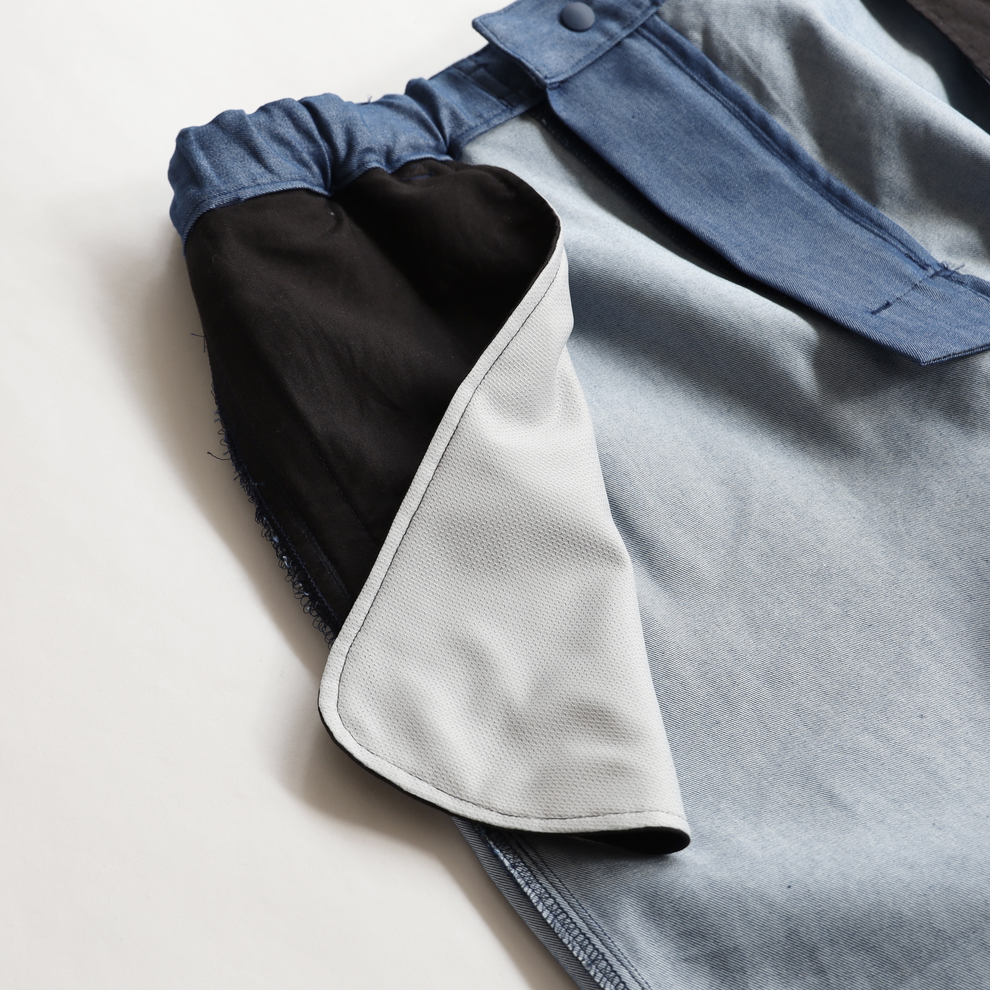 ポケットの袋布には吸湿速乾性素材(クールマックス)のメッシュ生地を使用し通気性を高めています。