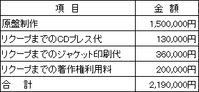 ・取扱者成功報酬:(本件レコードの売上枚数 - リクープ販売枚数)× 本件レコードの単価(税込)× 15%
