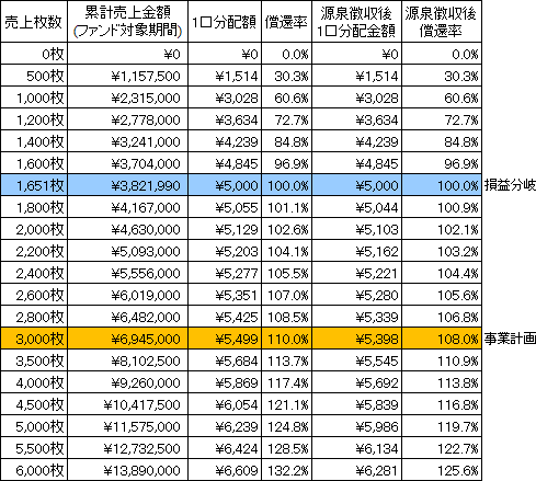 | 出資金募集最大総額(口数) | 2,190,000円(438口) | |||