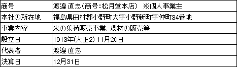 | 営業者 | 渡邊 直忠(商号:松月堂本店) ※個人事業主 | |||