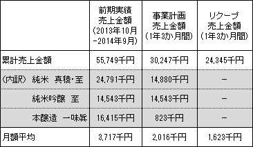 事業計画上の本匿名組合契約会計期間(2015年3月~2016年5月)の累計売上金額(税抜)は30,247千円(月平均売上金額2,016千円)であり、本匿名組合における累計リクープ売上金額(税抜)は24,345千円(月平均売上金額1,623千円)です。なお、営業者の前期(2013年10月~2014年9月)の同銘柄の売上金額合計(税抜)は55,749千円です。