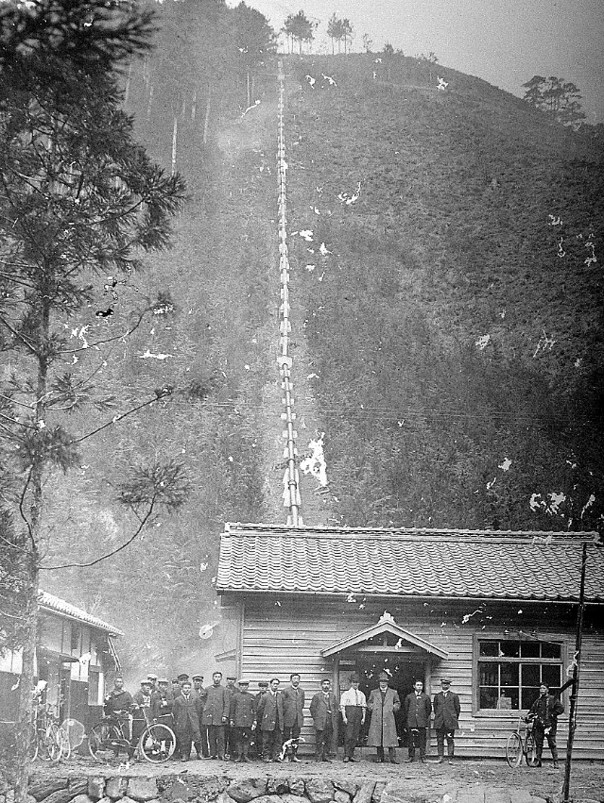 大正3年つくばね発電所高圧鉄管と建屋の写真