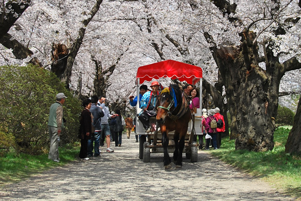 約2㎞にわたる桜のトンネルは圧巻。展勝地公園は開園まもなく100周年