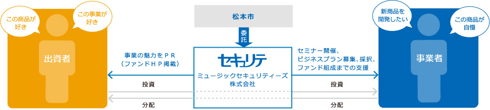 松本市では、事業者の投資型クラウドファンディングを活用した事業創出を支援しています。