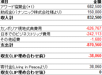 出資者のみなさまから、お一人当たり500円寄付をいただき行われたマイクロビジネスアワードの収支報告を掲載いたします。