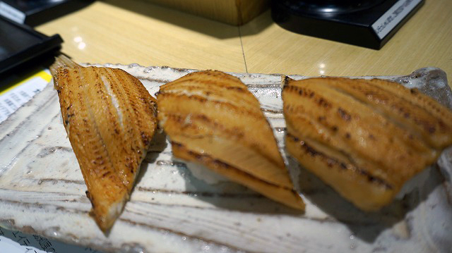タレは、あなごの骨を焼いて粉にして、出汁にしています。