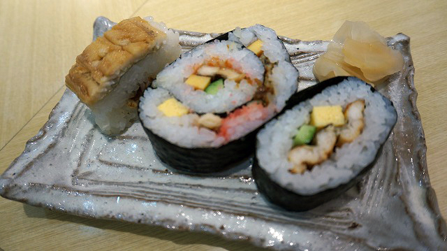 新鮮な国産のごぼうに焼いたあなごを巻いています。