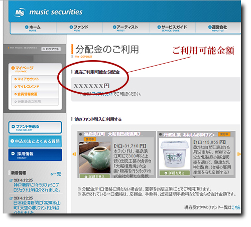 会員様の支払留保金(分配金)の残高はマイページより簡単にご確認いただけます。