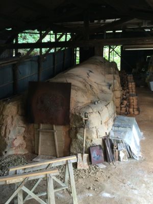 そして浜本先生のこだわって作られた斑唐津の釉薬を掛けていただき、割竹式登窯で焼いていただきました。