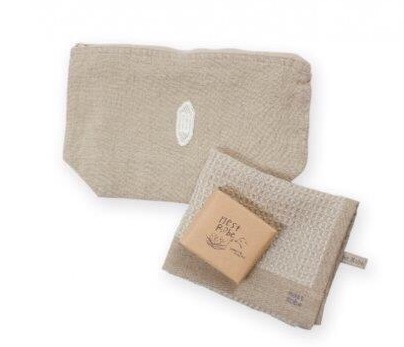 東京を中心に16店舗を展開するアパレルブランド『nest Robe』さんの【10周年記念限定アイテム】ポーチセットに、SAVON de SIESTAの石鹸が使われました。オリジナルパッケージ&スタンプの白樺石鹸とリネンのポーチ、ハンドタオルの3点セットです。オンラインショップと15店舗でお買い求めいただけます。