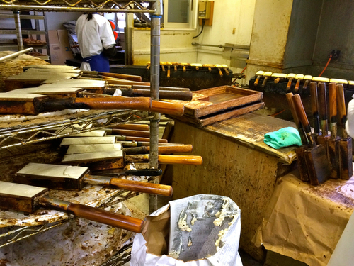 焼き上がり、並べられた豆富かすてらは、まだ湯気があがり、ふわふわの食感です。