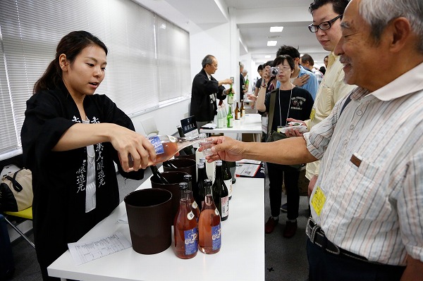 南部美人さんのブースでお酒をふるまう冨着(ふちゃく)さん
