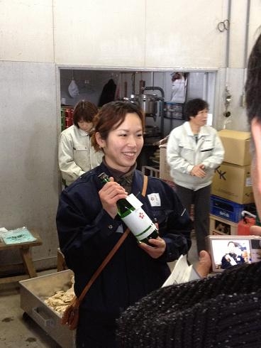 寒梅酒造では、酒蔵見学、宮寒梅の紹介、酒粕の詰め放題を行いました。