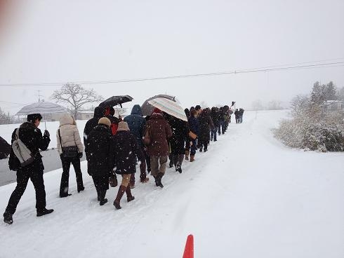 大雪のため、何と高速道路が閉鎖。普通道路で気仙沼まで向かいました。