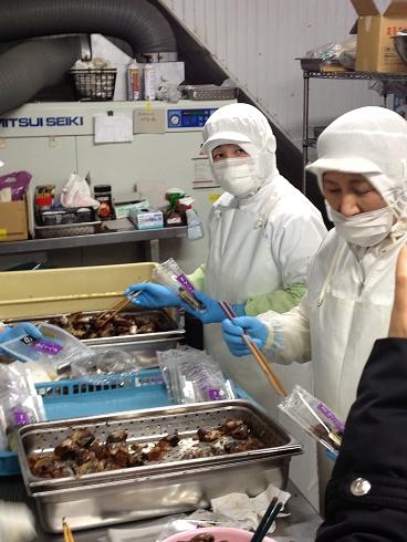 [できあがった金のさんまは、一つずつ丁寧に袋詰めされます。]