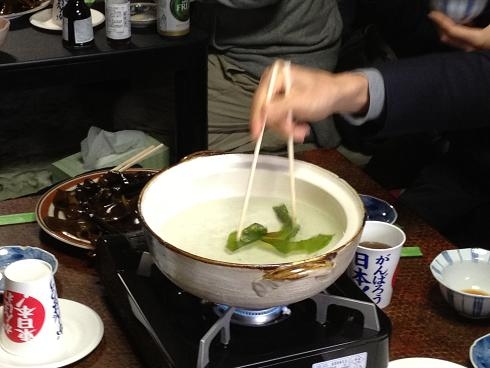 [気仙沼市内の唐桑で当日の朝、採れたばかりのわかめとめかぶを贅沢にしゃぶしゃぶにしていただきました。]