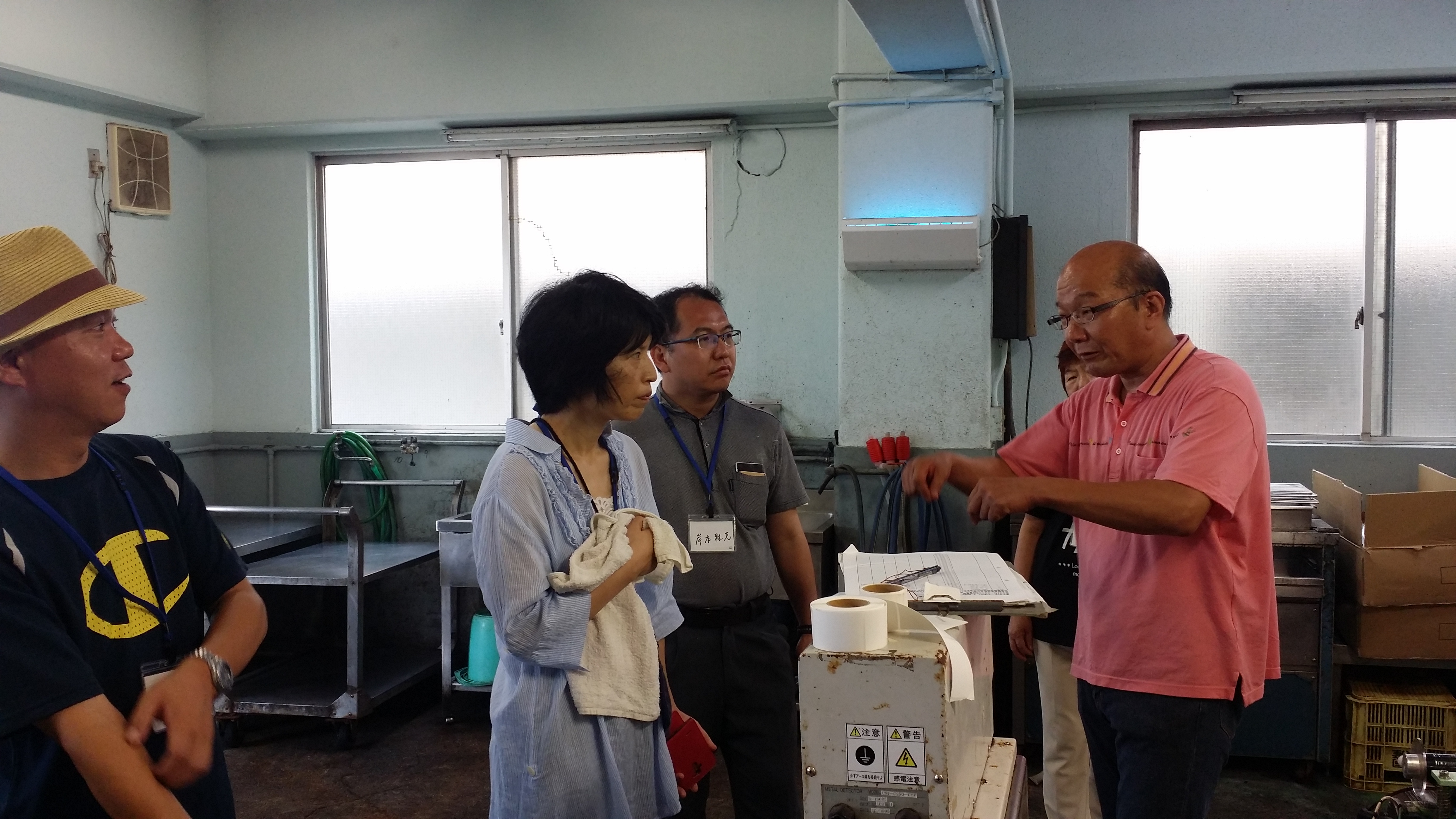 社屋見学では魚を加工する機械(魚を入れると3枚おろしになったり・・)や、天日干し製品を作る干場、わかめ加工に欠かせない水のこだわりなどを伺いました。