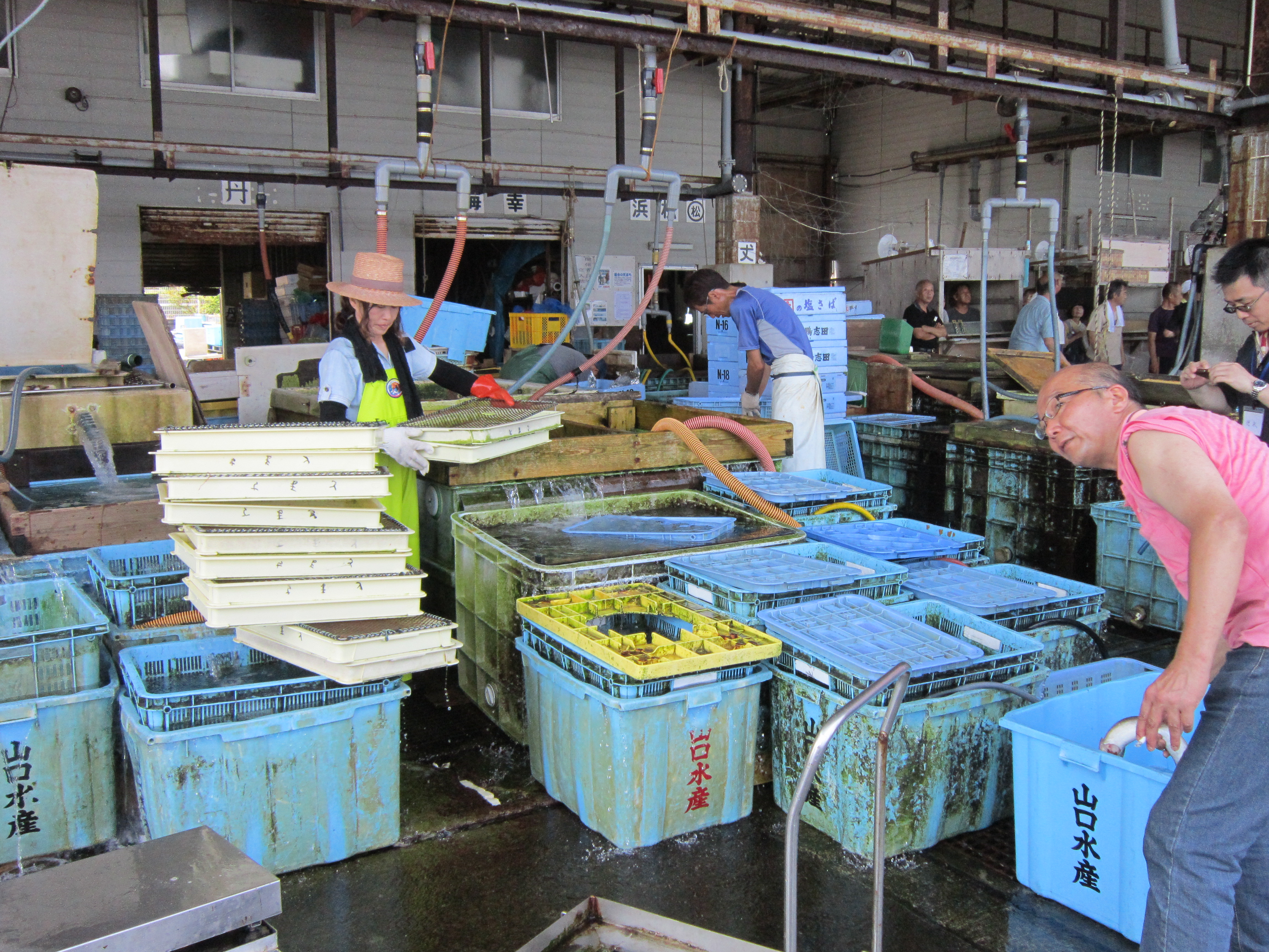 続いて、名だたる料亭から買付があることで有名な「由良漁港」を見学。