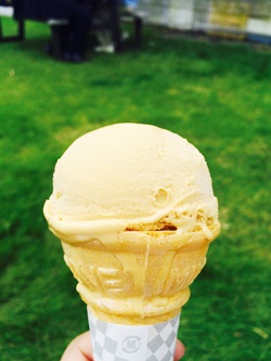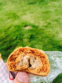 カンボジア産のパームシュガーを使ったアイスと、同じくカンボジア産のバナナ、緑豆を使ったまんじゅう。