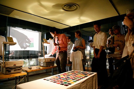 作品紹介の後、出資者の方々と一緒に、新しいTシャツのデザインを