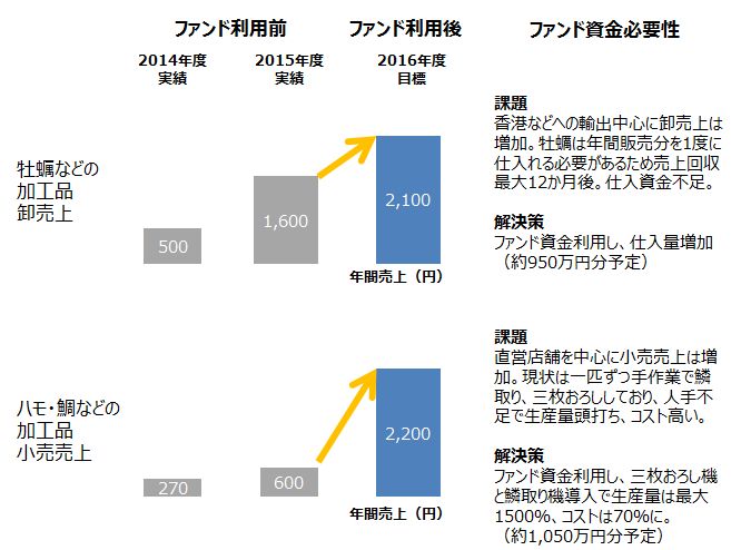一方、牡蠣の仕入れは1回で行う必要があり、今後、さらに売上を伸ばすためには原料仕入れ資金の確保を必要としていました。