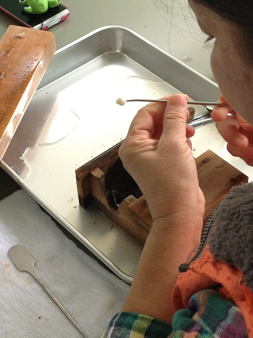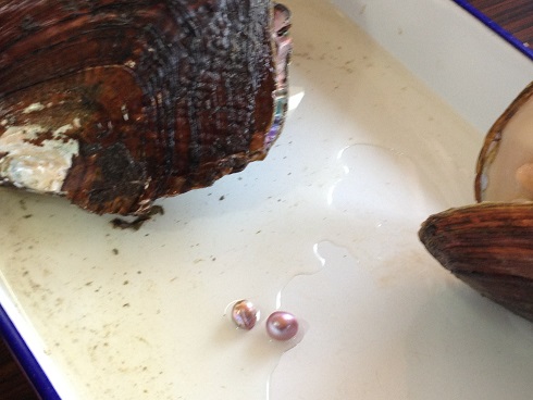 さて本来であれば、手術後から琵琶パールができるまでに3年かかるのですが、今回はテレビの取材が入っていたこともあって、特別に、まだ若い2年目の琵琶パールを見せていただくことができました。いい琵琶パールができているのか、どきどきです。