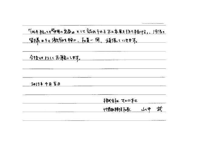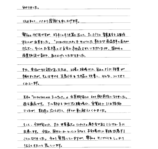 投資家の皆さまへ、山中社長より直筆メッセージ