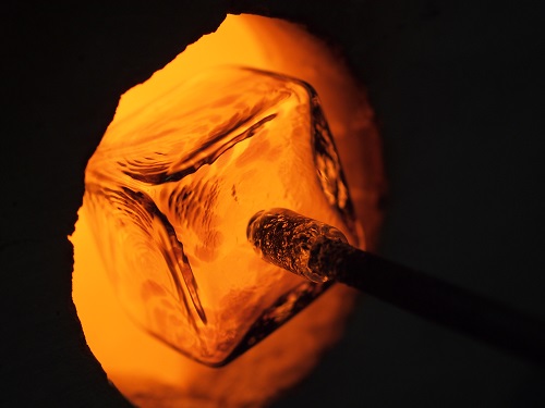 また、溶けた状態のガラスは本当に美しくとろとろとしていて、あめ色に輝いています。完成した作品はひんやりと固まりますが、そこに溶けていたときの痕跡を少しでも残せたら、私の思うガラスの美しさがもっと引き出せるような気がしています。
