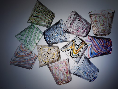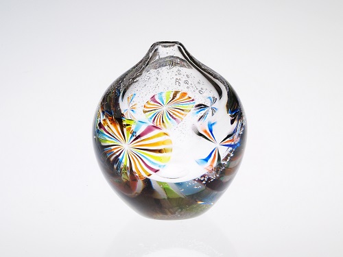 ガラスの最大の魅力は、透明であるということだと思います。私は色をたくさん使いますが、ガラスという素材が光を通すから、色もより鮮やかに見えます。今まで私はガラスにのせる色をどんな風に並べようか、どんな柄にしようかということや、新しい柄が出来ないだろうか、というようなことを考えて制作していたと思います。