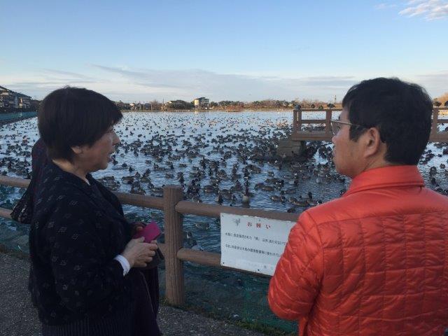 瓢湖のご案内は、瓢湖を愛してやまず、瓢湖の保全活動にも取り組んでいるお茶の紫香園(阿賀野 紫香園旨味と甘みのお茶ファンド)の佐藤社長にバトンタッチして、ご説明を頂きました。