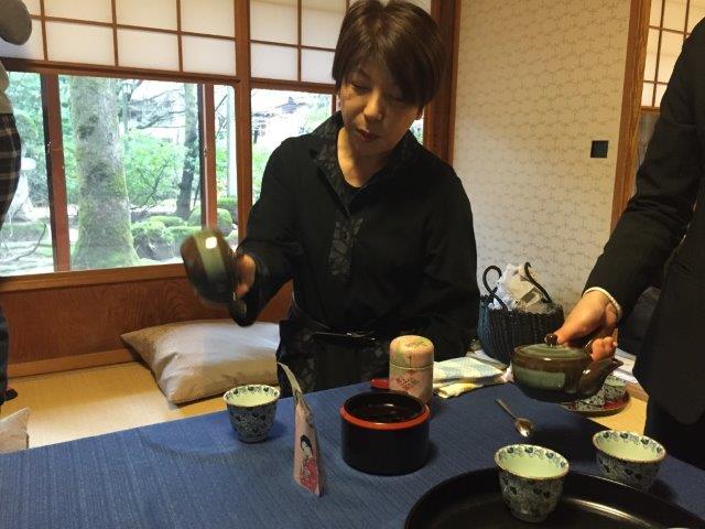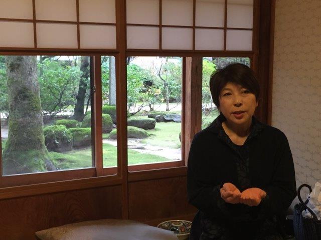環翠楼さんのお部屋をお借りして行いました。 和室と庭園とお茶、非日常空間で、こうした講座はとても新鮮で、