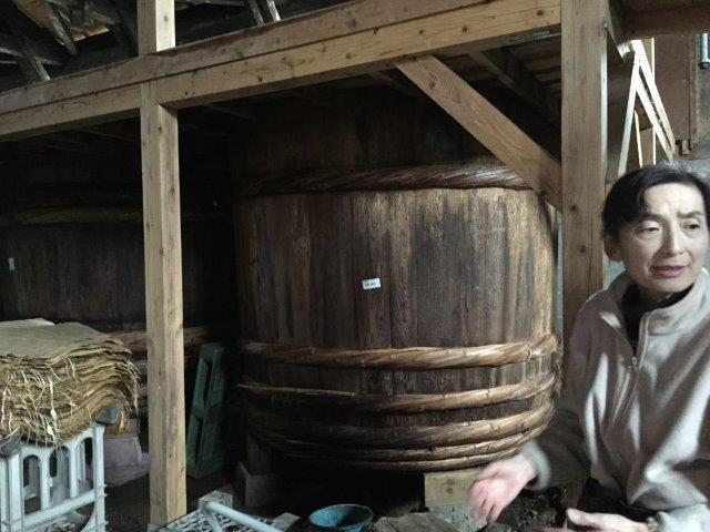 こちらがコトヨ醤油の美味しい醤油が生みだす160年以上 使い続けている杉桶です。