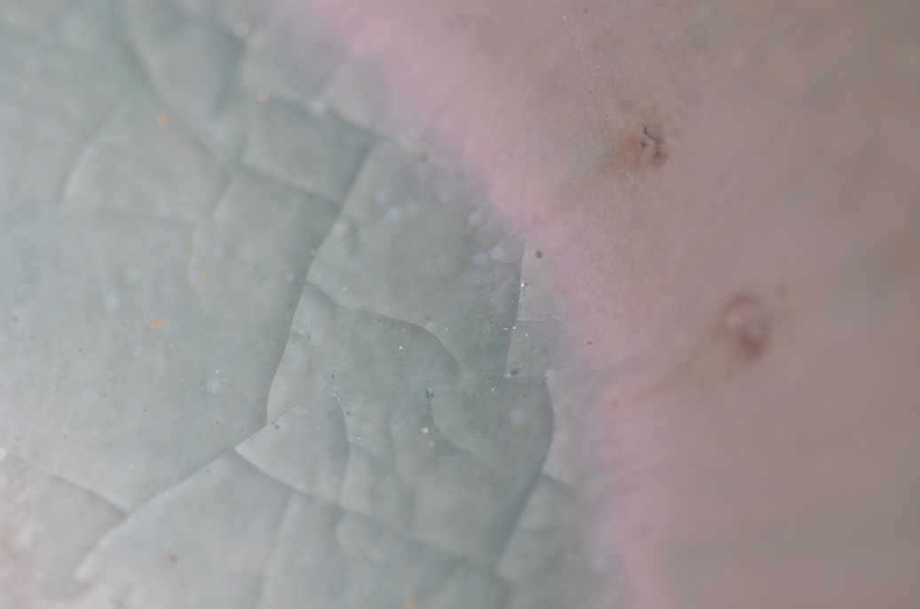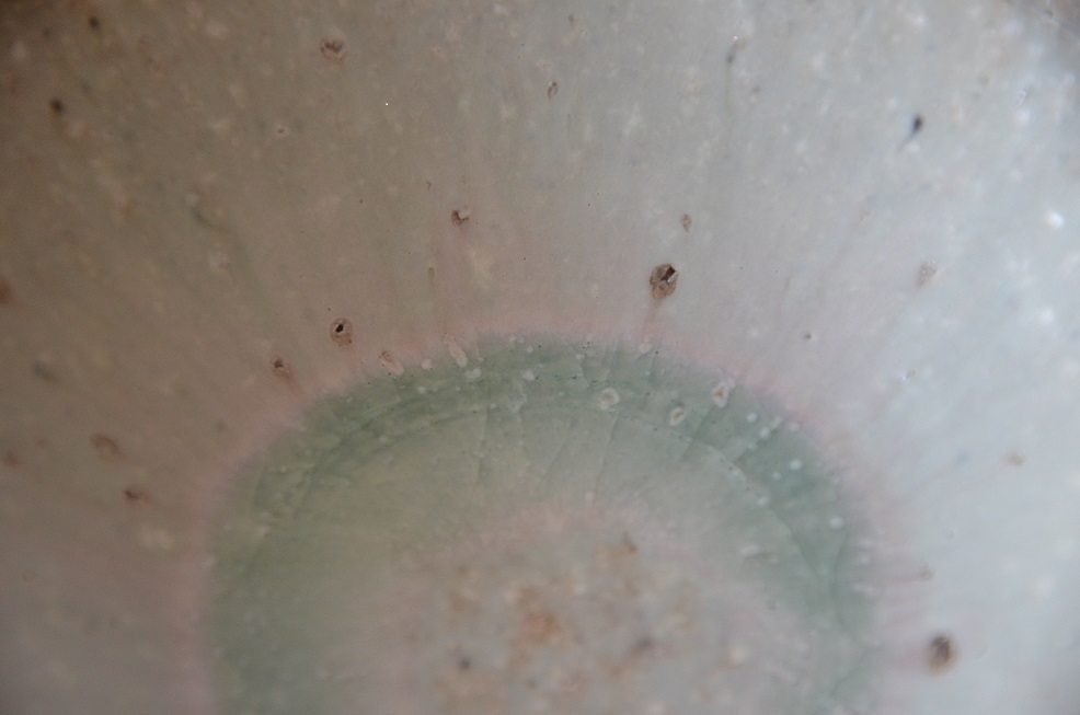その周りに淡い桃色の窯変(窯の中で変異した状態)がでています。