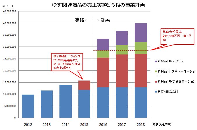 事業計画としても、「ゆず保湿ローション」を通年かけて販売し、その他の新商品も販売
