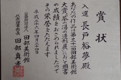 陶彩窯 長戸裕夢 田部美術館「茶の湯の造形展」入選