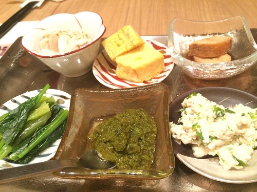 まず1品目は小皿の盛合せ。