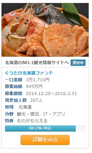 「ぐうたび北海道」ファンドは、残りあと約12%(2016/2/11時点)まで来ました。