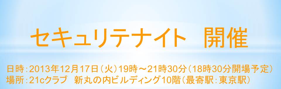 イベント 2013年11月15日 10:3712/17(火) セキュリテナイト in 東京 開催!!