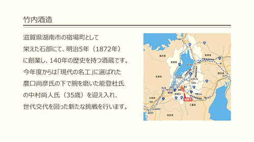 過去のニュース 4/15(土)・4/16(日) 京都最大級の日本酒イベント「SAKE Spring」に出店!是非お越しください 2017年3月30日 10:13 残り4日となりました。 2016年9月27日 13:17 新メンバーになってから初めての金賞 2016年5月19日 12:20 事業者のニュース一覧へ