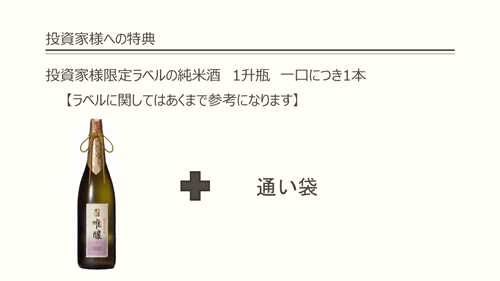 ファンド情報 近江 竹内酒造「香の泉」ファンド 竹内酒造株式会社 会計期間 2016年10月1日 ~ 2019年9月30日 一口 31,710 円 償還率 85.64 % 参加人数 345 人 調達実績 18,330,000 円 ファンド詳細を見る