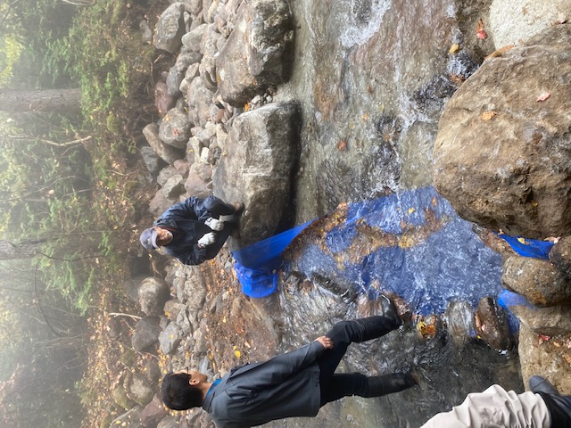 そこで今日から、取水口に網を張って、取水口に流れてくる葉っぱの量を調べることにしました。